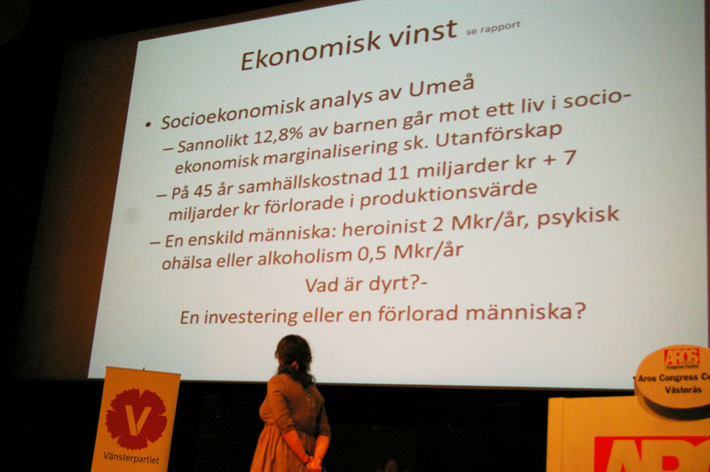 Jag tycker att Jonas Sjöstedt och Ulla Andersson kom in på det mycket bättre. Någonstans så är alltid grunden för allt som ska göras i ett samhälle ekonomin. Hur tråkigt och osexigt ekonomi än är, jämfört med att hjälpa utsatta människor till ett bättre liv, så krävs det en fungerande ekonomi, i synnerhet när världsekonomin är i rejäl kris, för att alls kunna avdela pengar till de som behöver det.